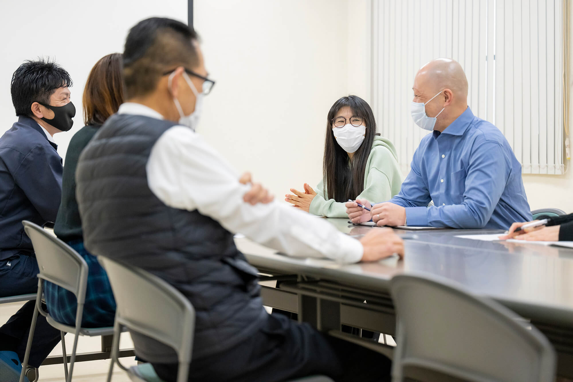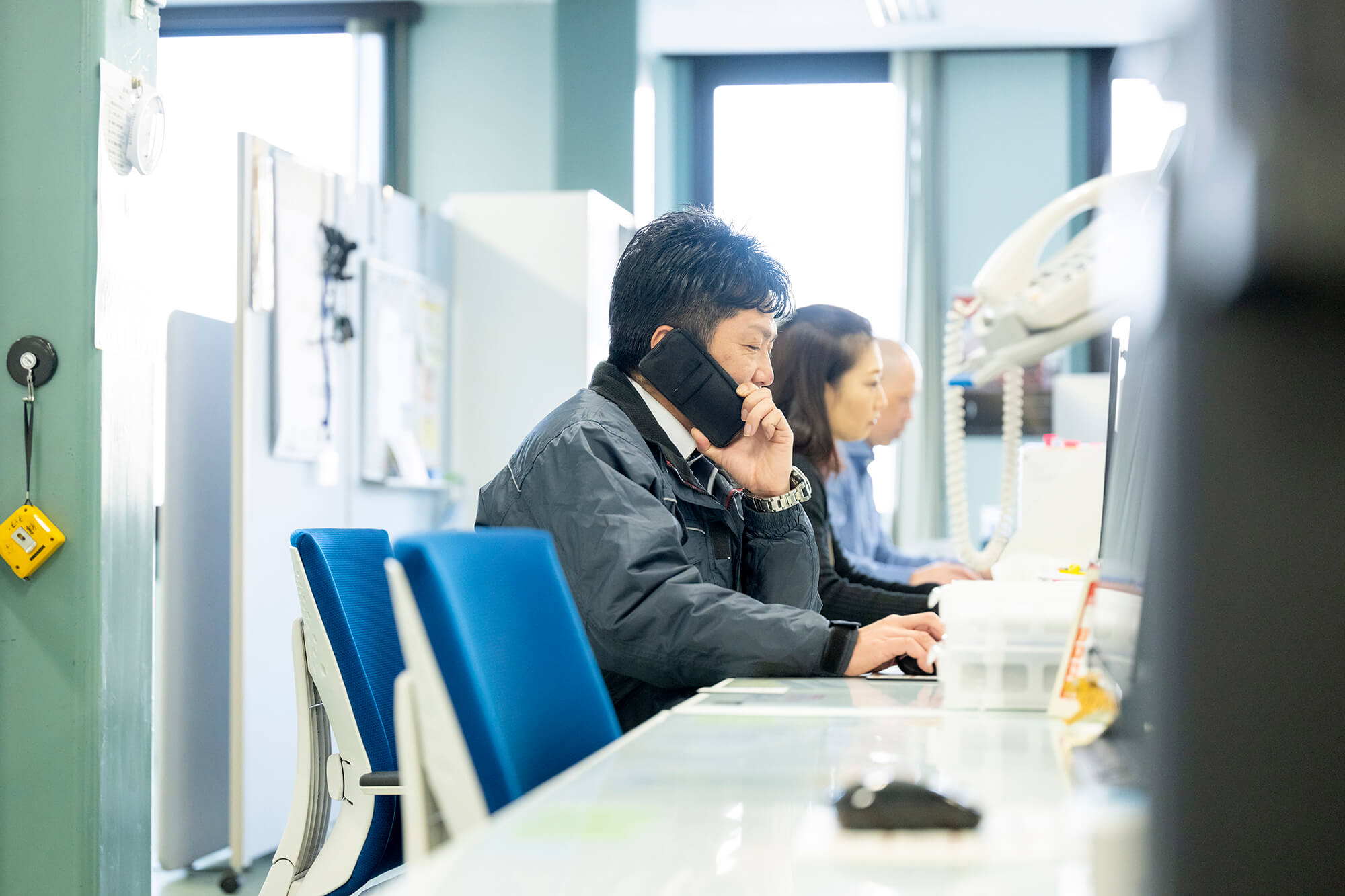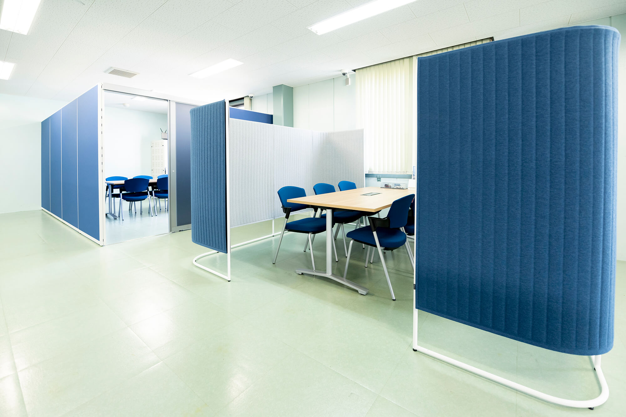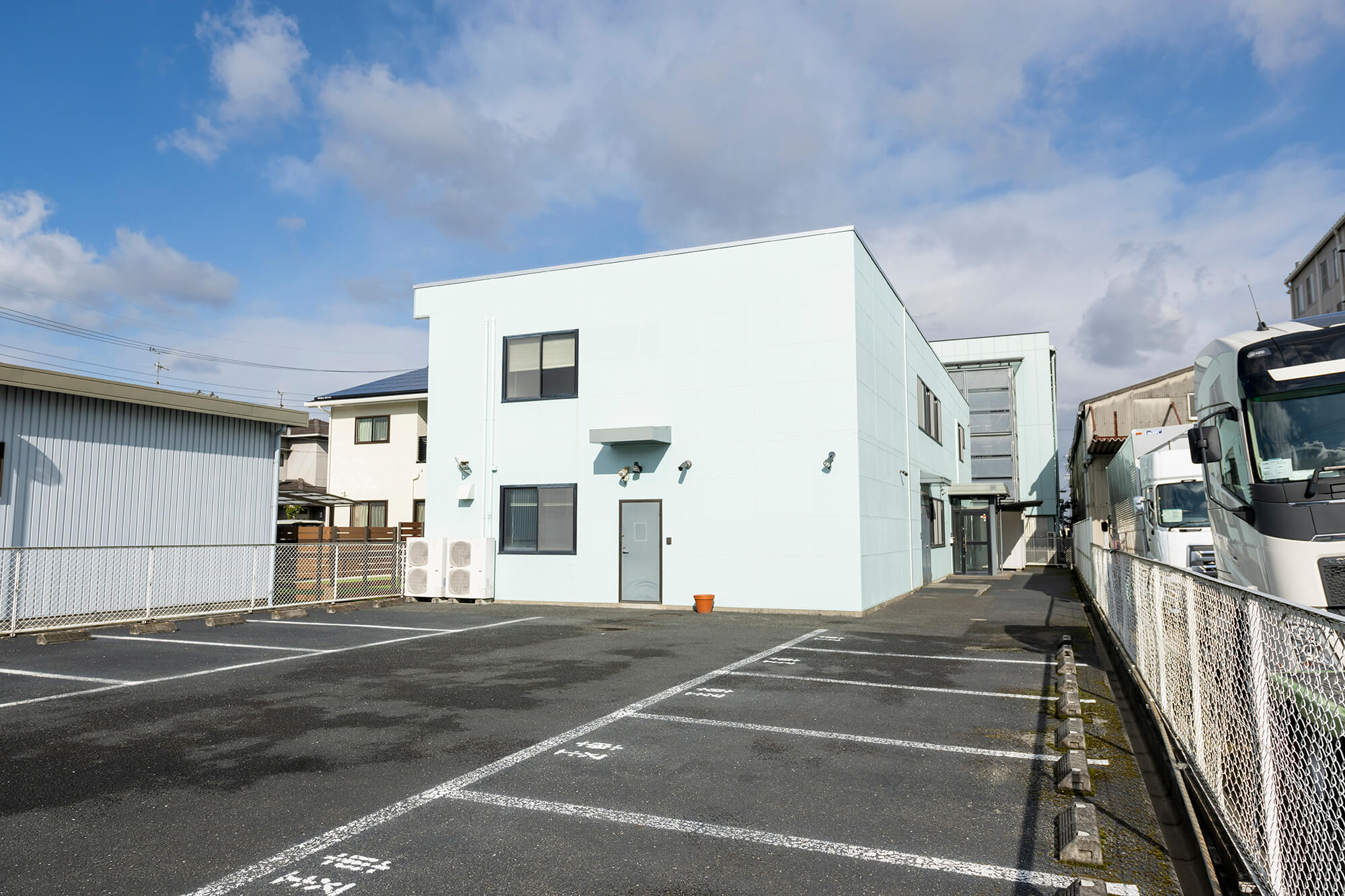 建物は3階建てになっており、最新の事務機器を取り入れ、全体安全会議などでは、全社員80名程が収容できるスペースになっております。