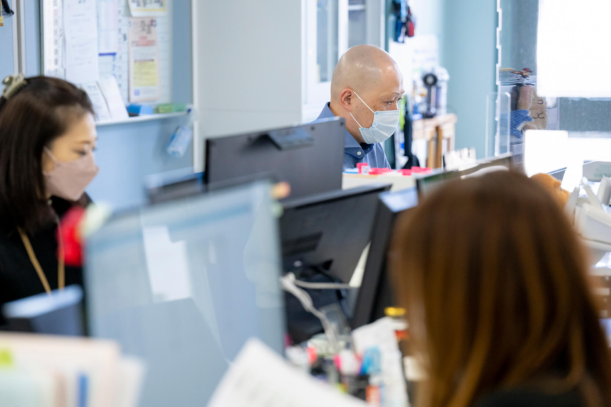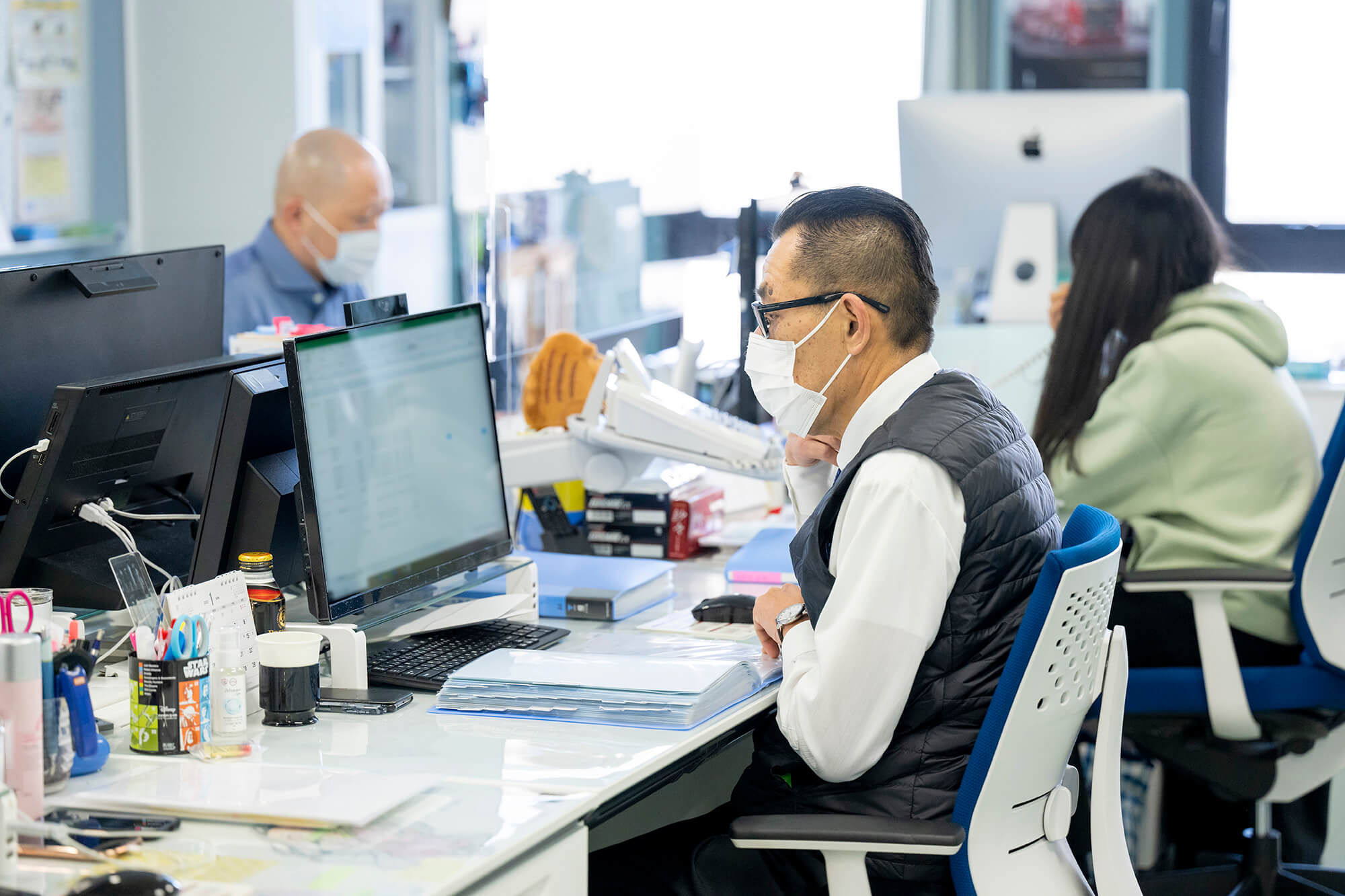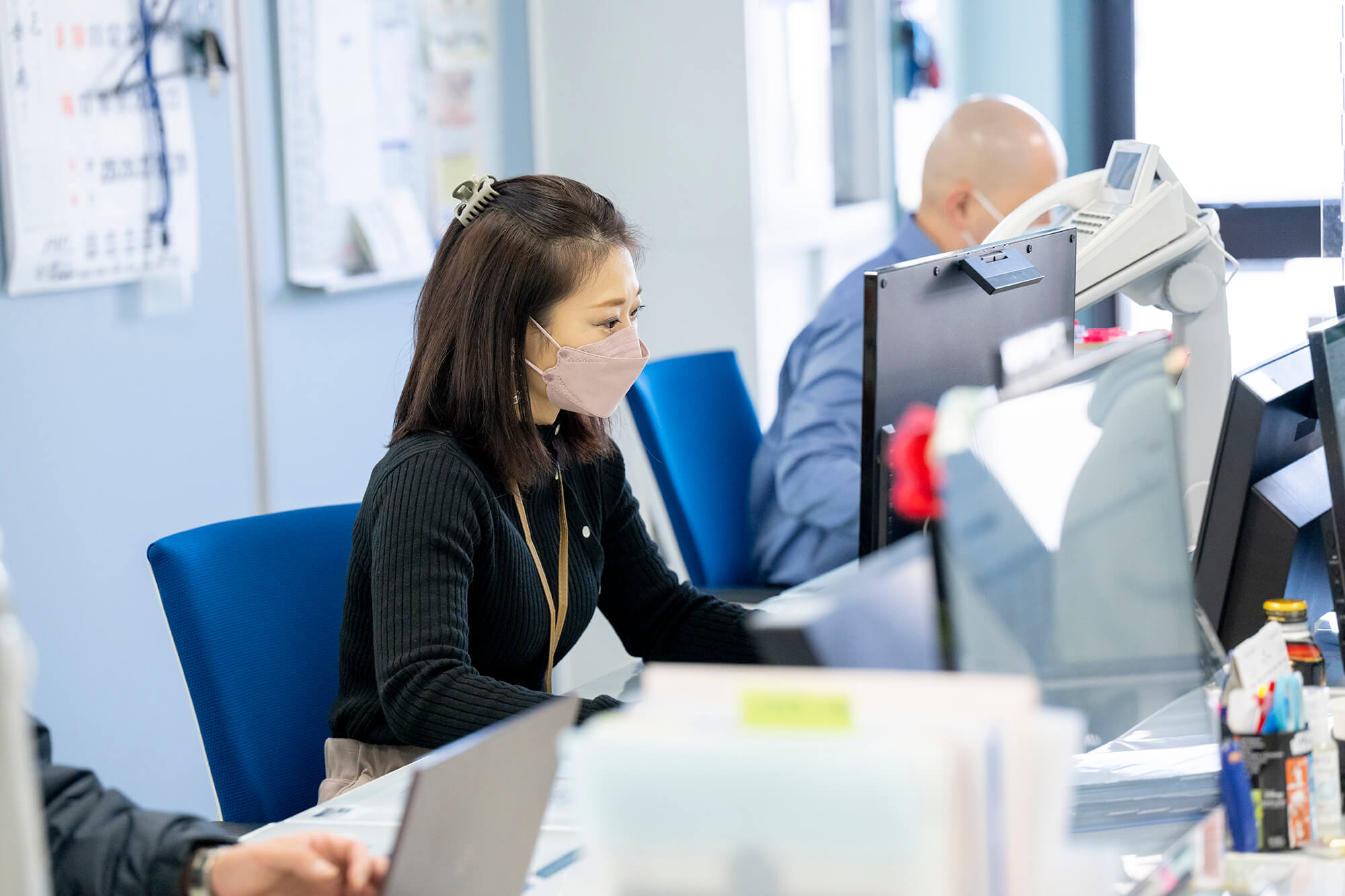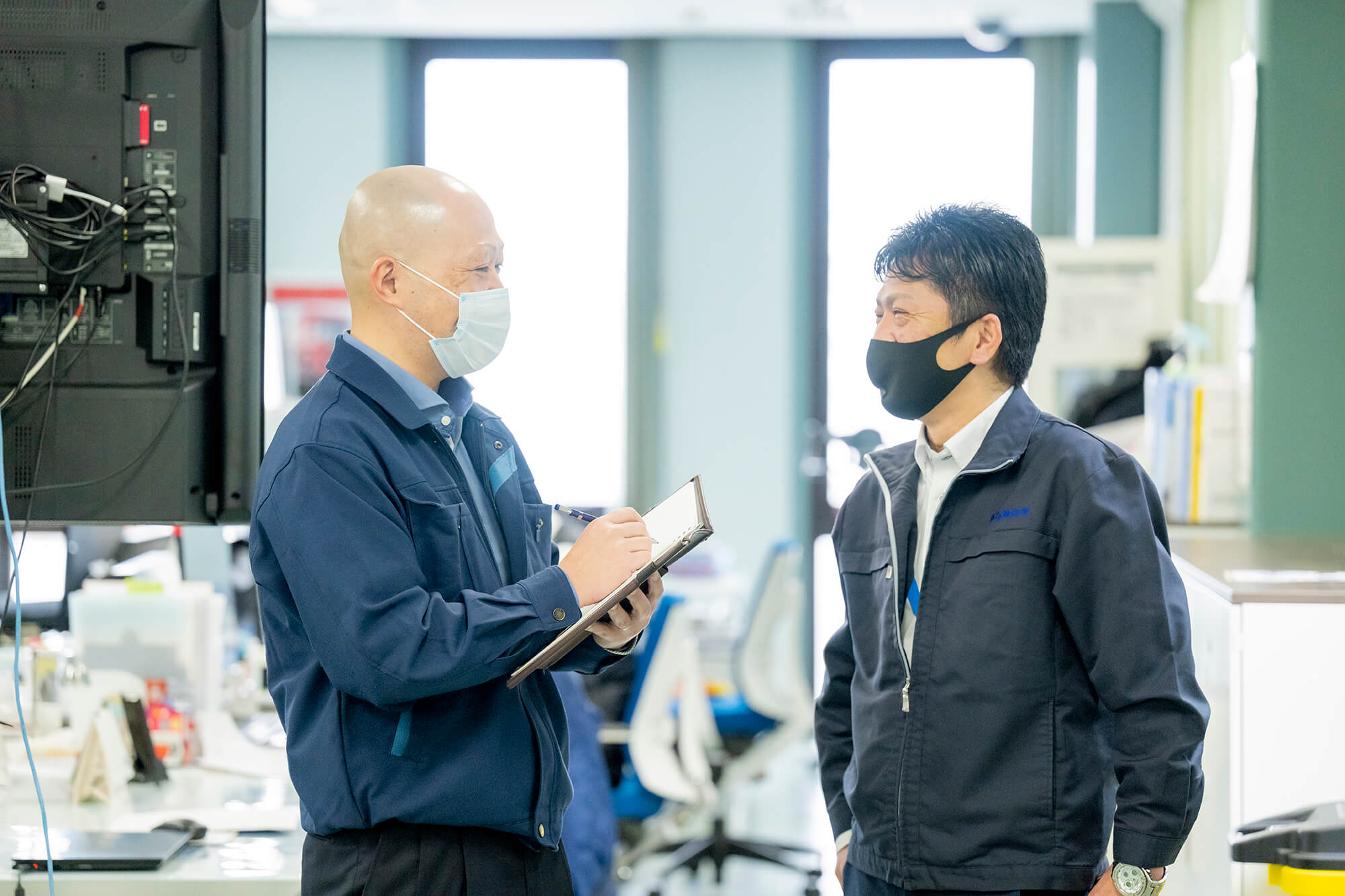 建物は3階建てになっており、最新の事務機器を取り入れ、全体安全会議などでは、全社員80名程が収容できるスペースになっております。