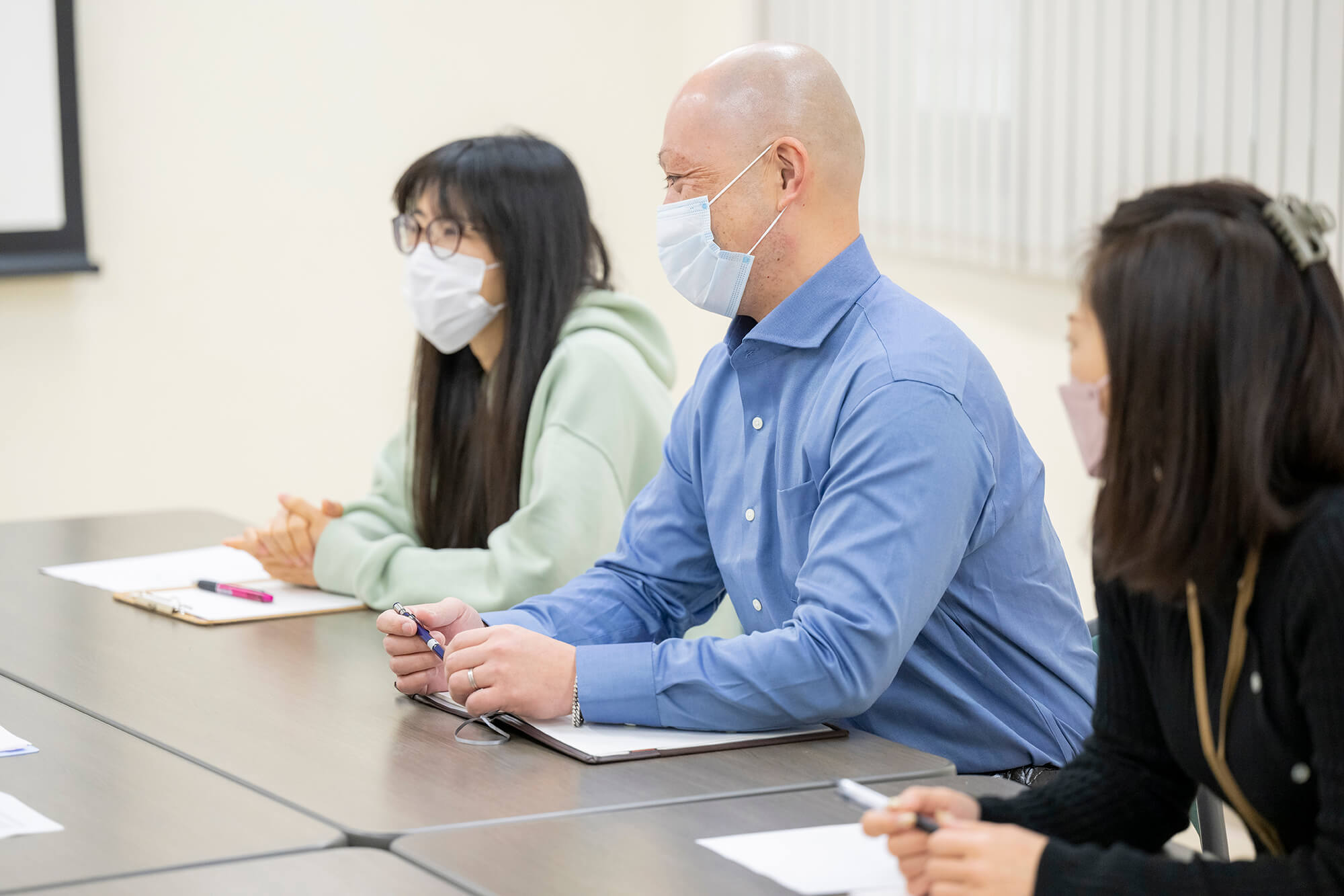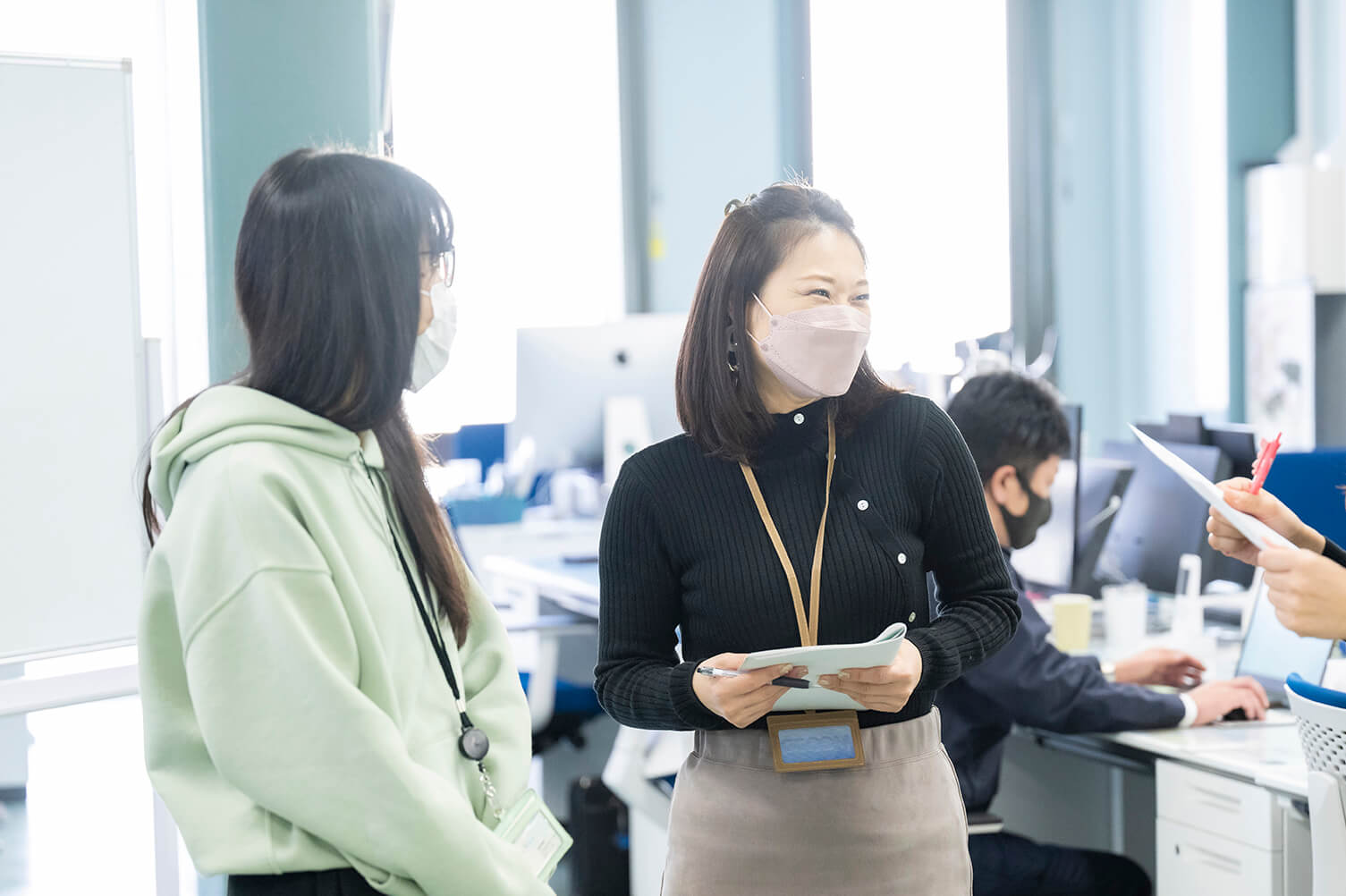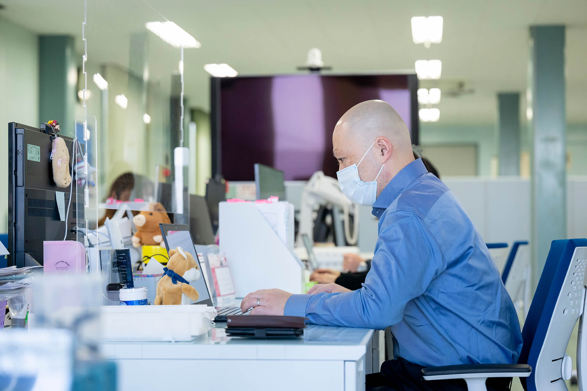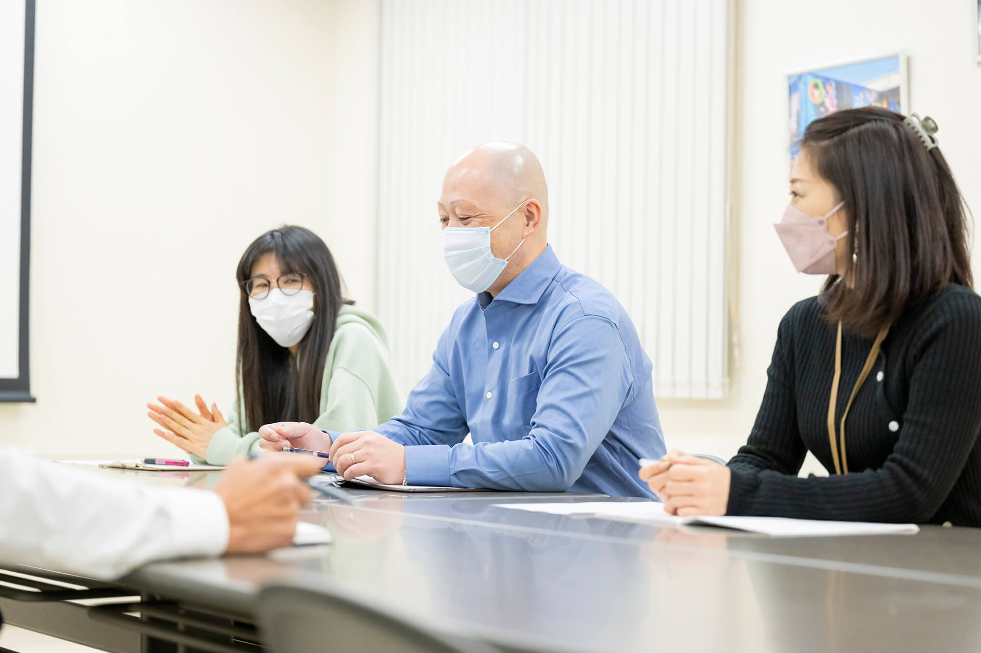 建物は3階建てになっており、最新の事務機器を取り入れ、全体安全会議などでは、全社員80名程が収容できるスペースになっております。