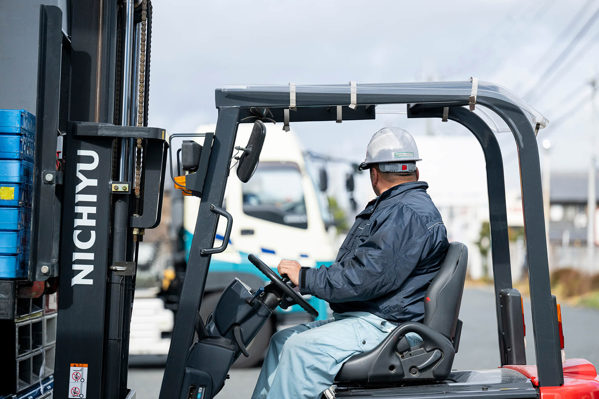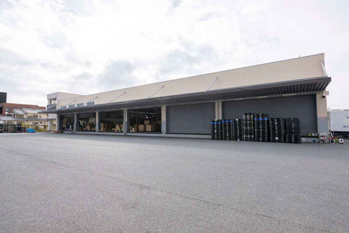 田原本営業所では、国道24号線に面した好立地の場所が物流の拠点となり、10,077㎡の敷地面積に車両の第一駐車場を構え、4,356㎡の物流倉庫A棟を保有しております。又、隣接する3,113㎡敷地面積には、第2車庫を構え2,210㎡の物流倉庫B棟を保有しております。